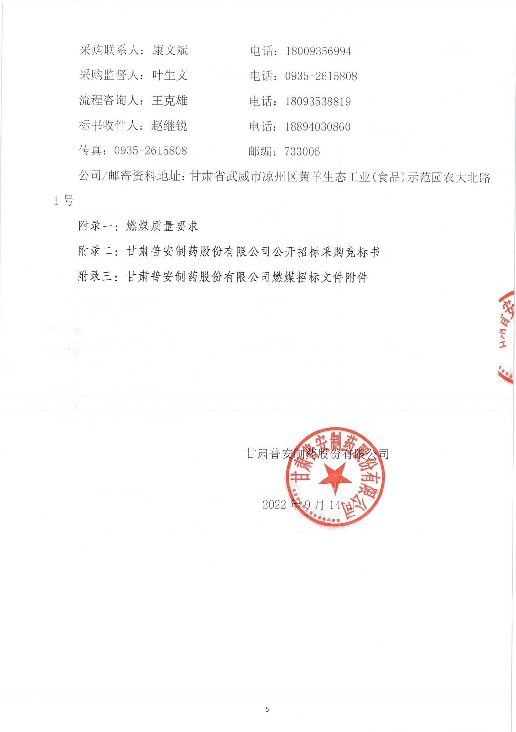 甘肅普安制藥股份有限公司燃煤公開招標(biāo)采購(gòu)公告
