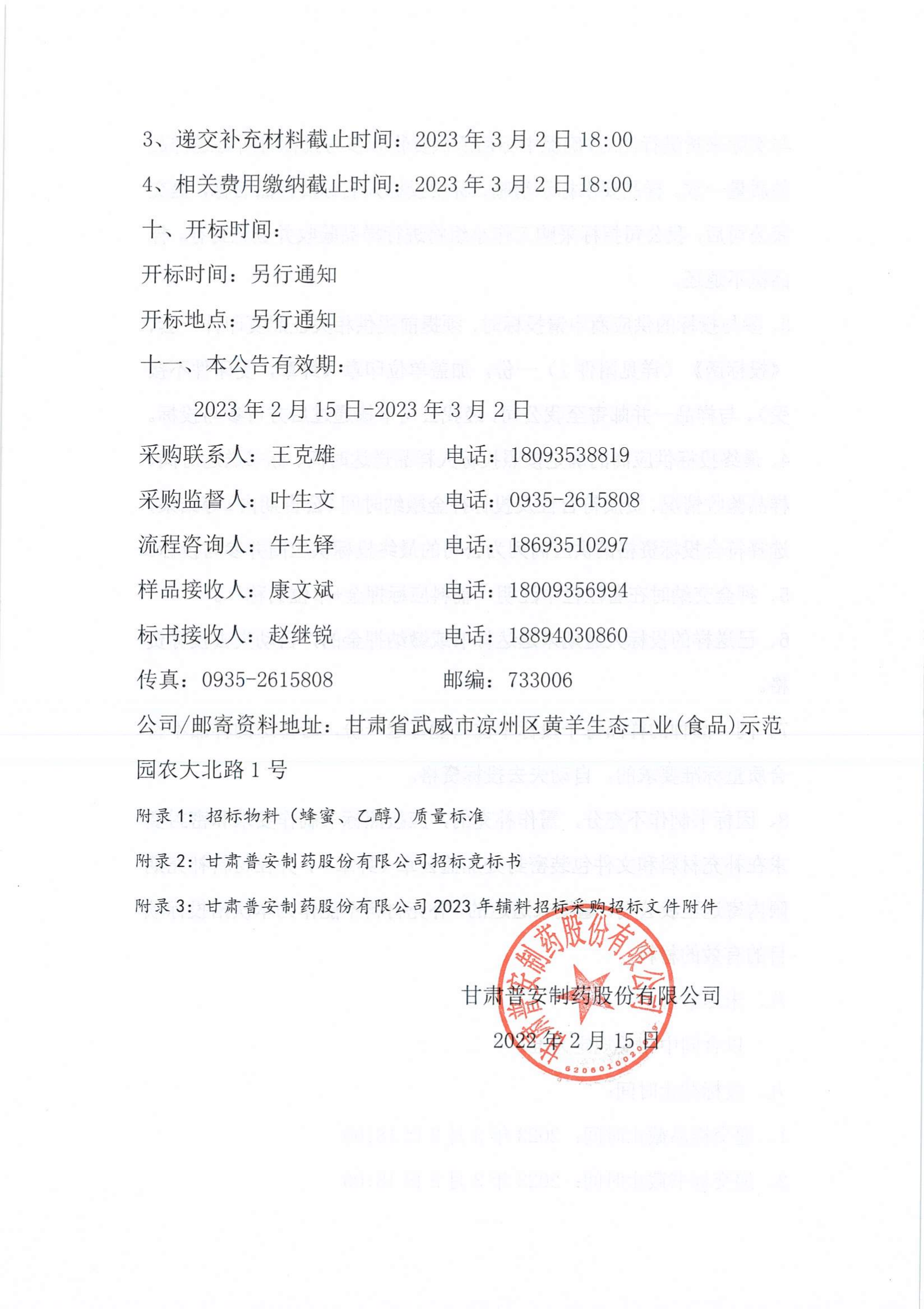 甘肅普安制藥股份有限公司2023年宣肺止嗽合劑物料(蜂蜜、乙醇)招標(biāo)采購公告