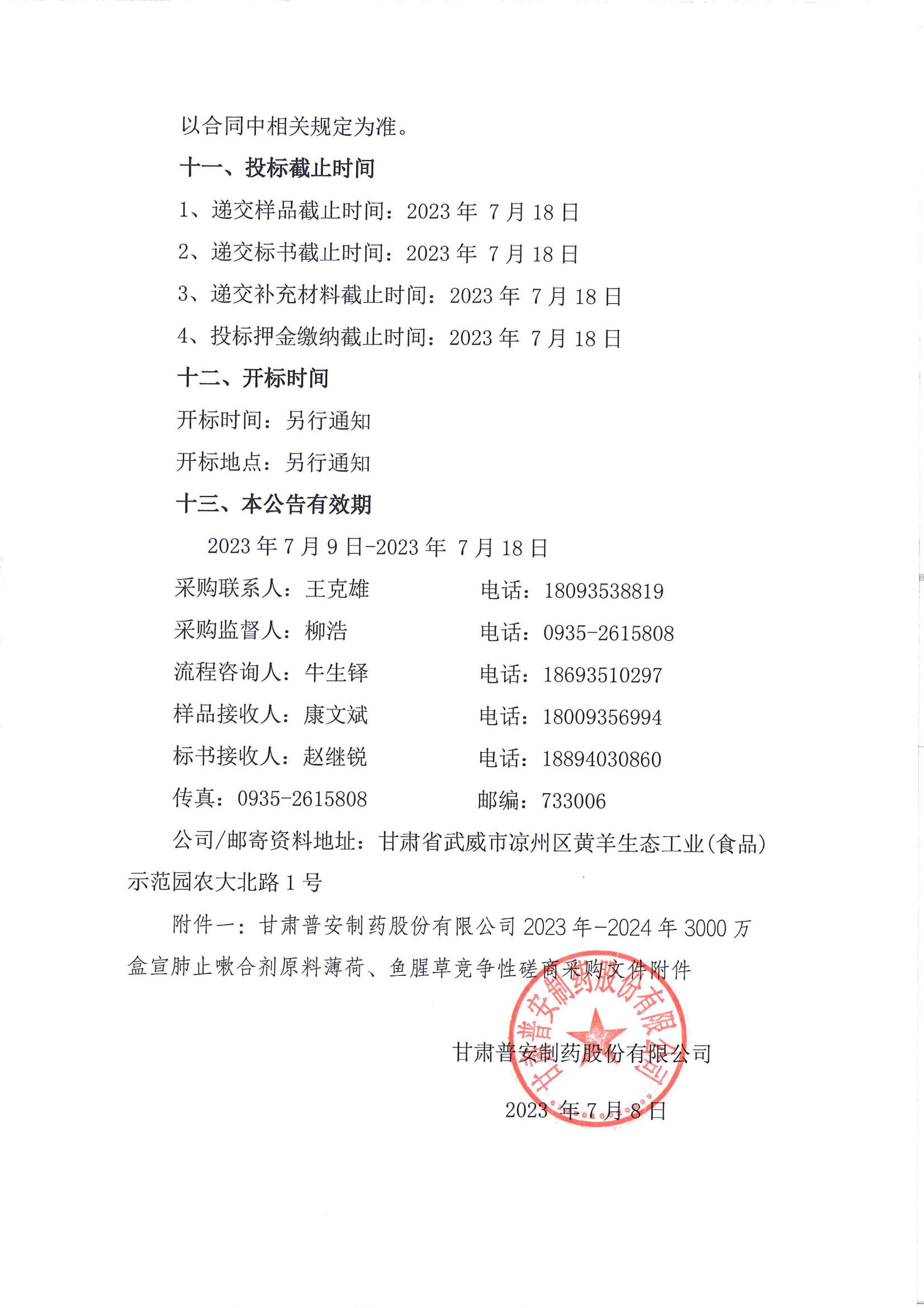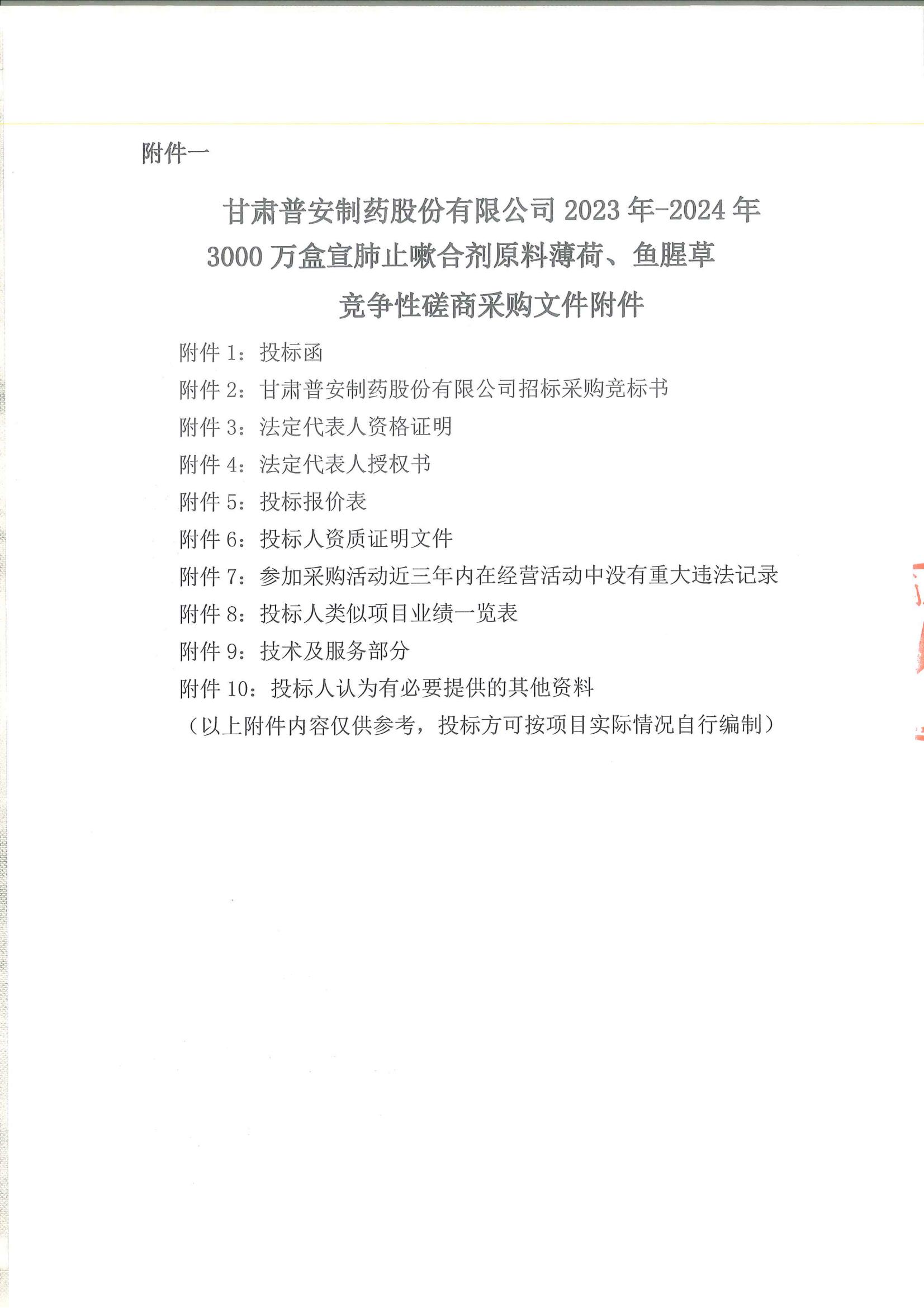 甘肅普安制藥股份有限公司2023年—2024年3000萬(wàn)盒宣肺止嗽合劑原料薄荷、魚(yú)腥草采購(gòu)競(jìng)爭(zhēng)性磋商公告
