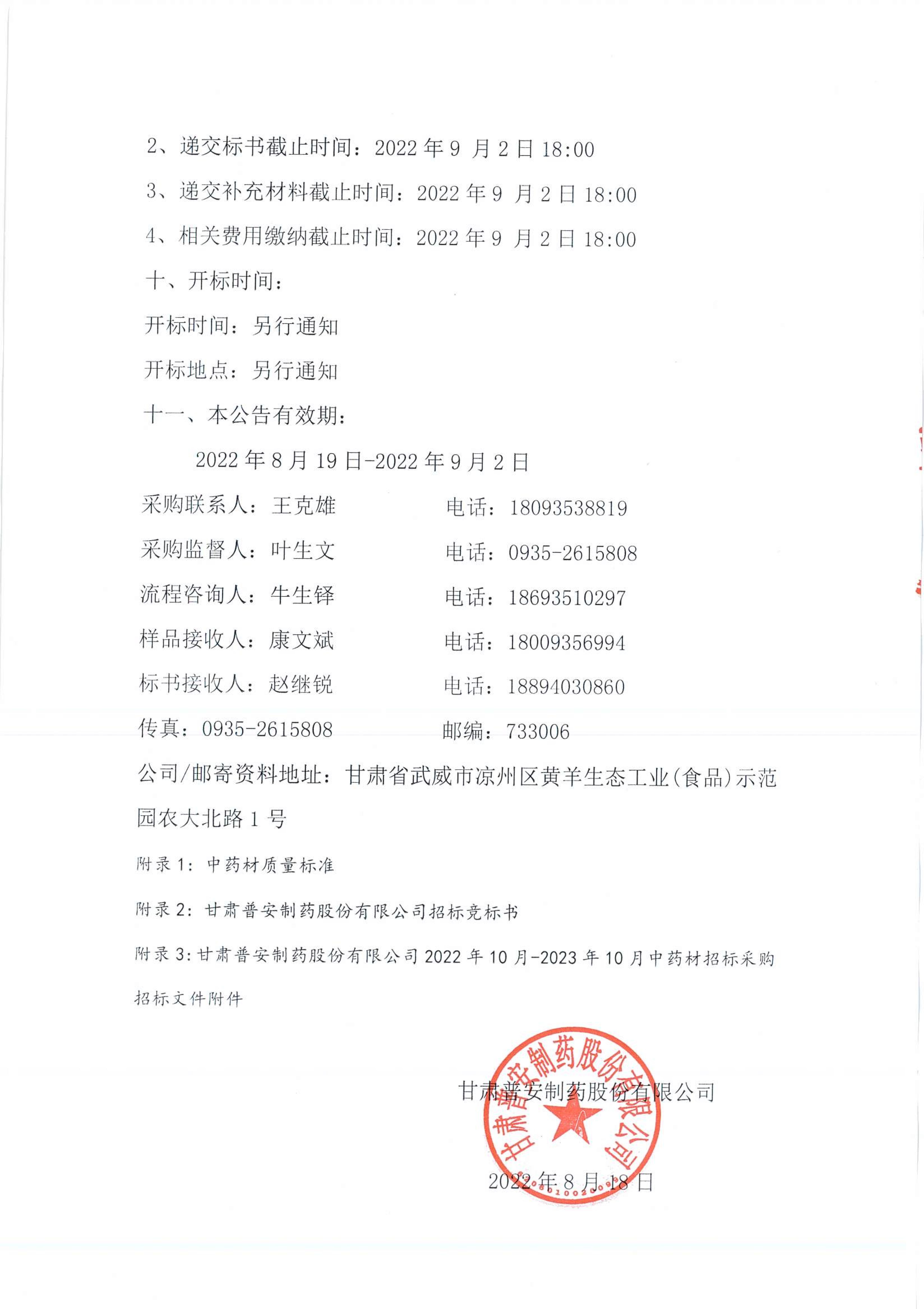 甘肅普安制藥股份有限公司2022年10月-2023年10月中藥材招標(biāo)采購(gòu)公告