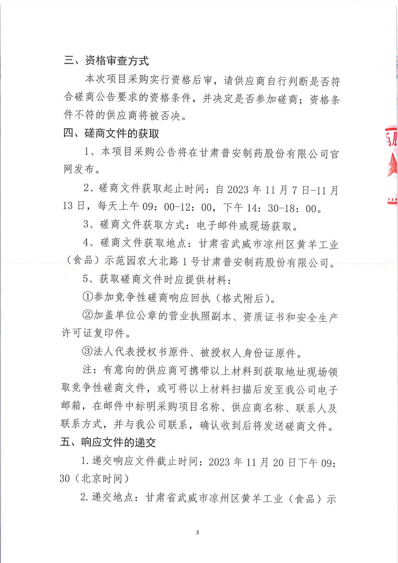 甘肅普安制藥股份有限公司變壓器增容更換工程競爭性磋商公告