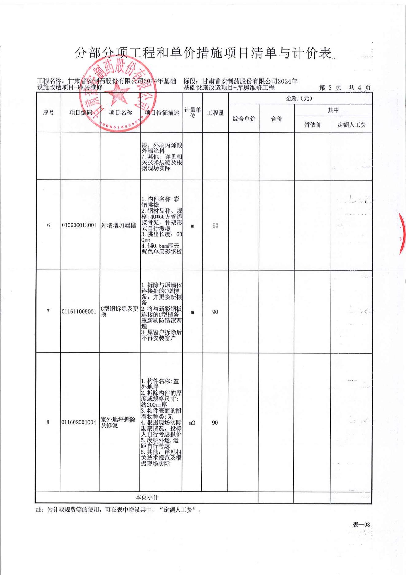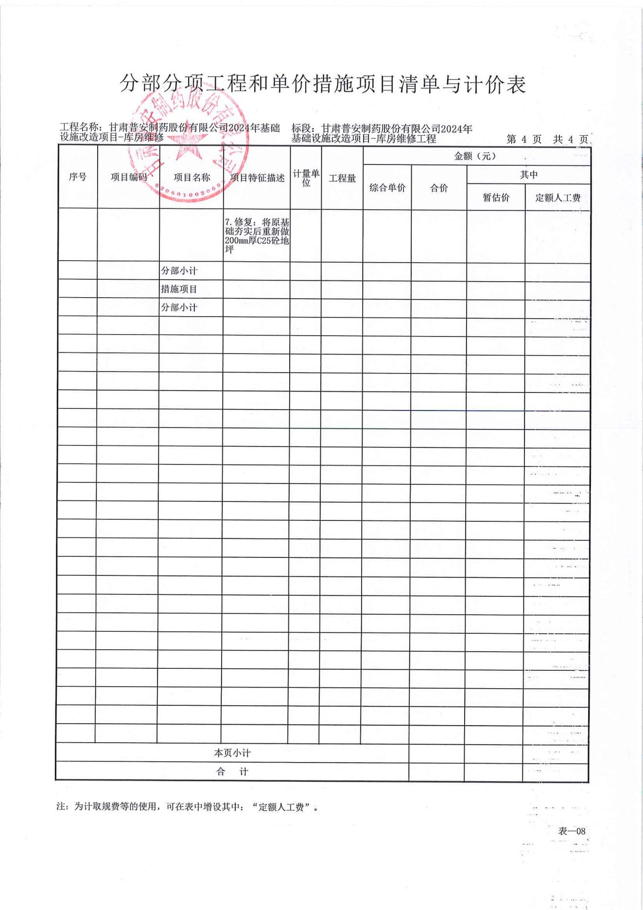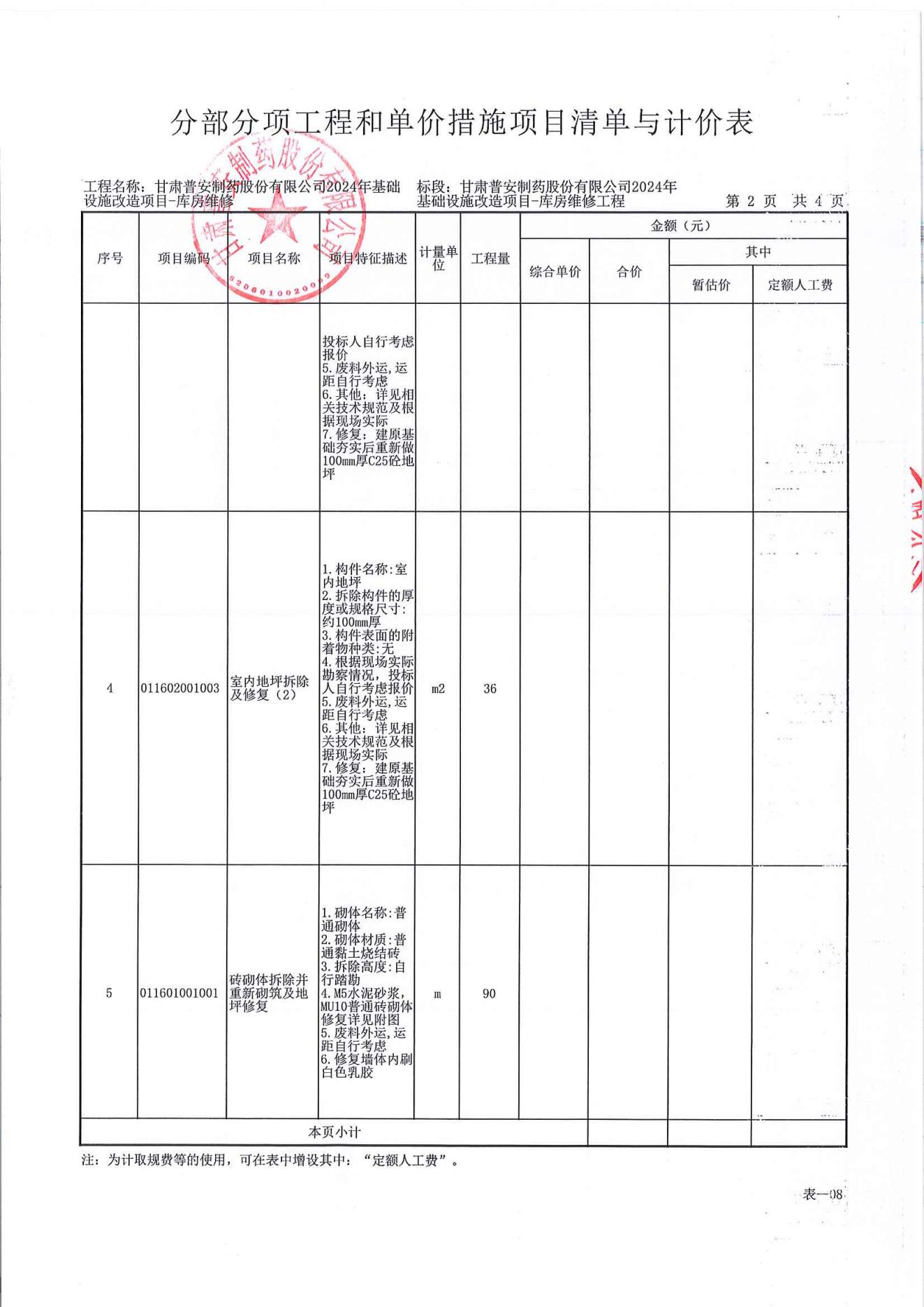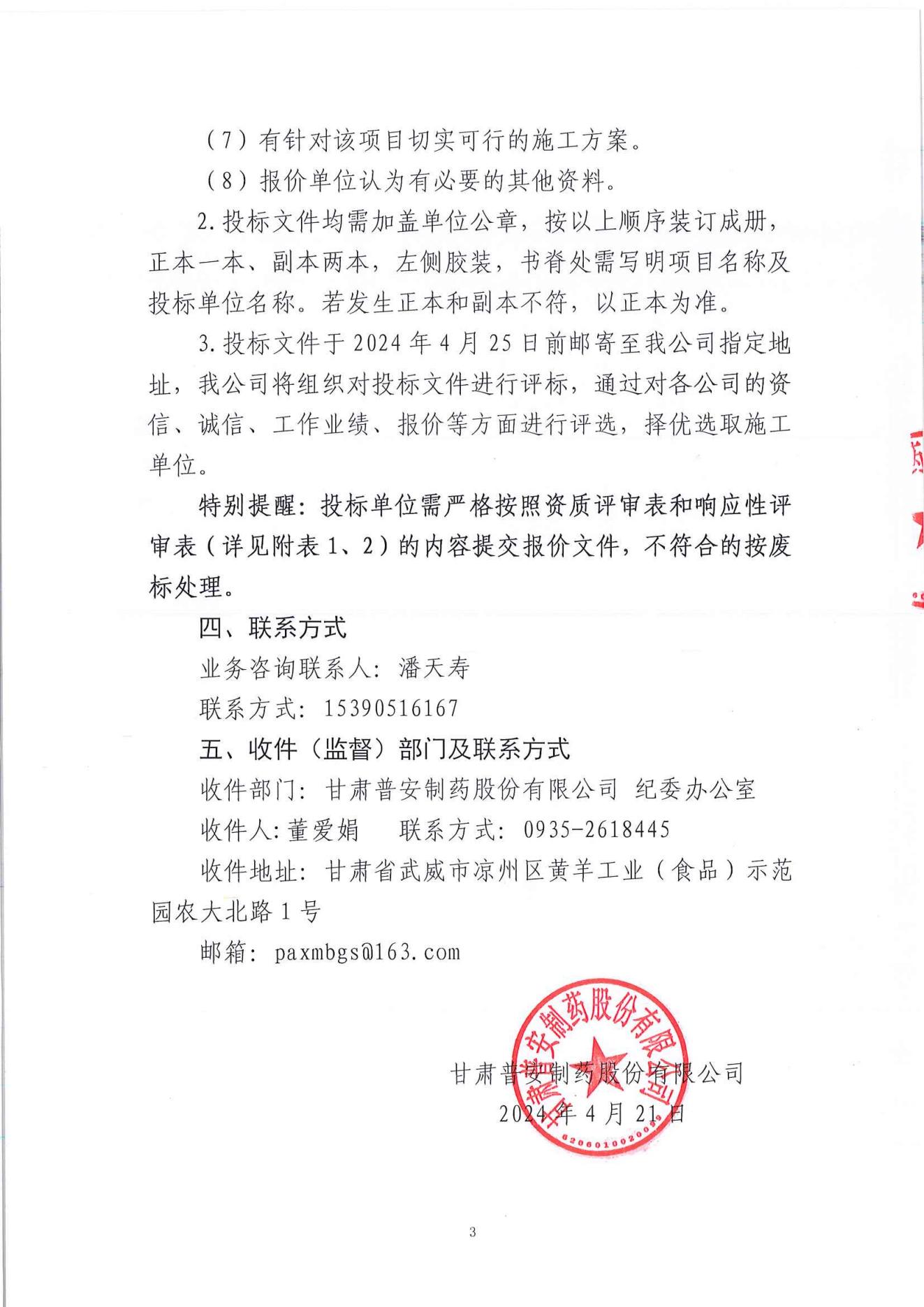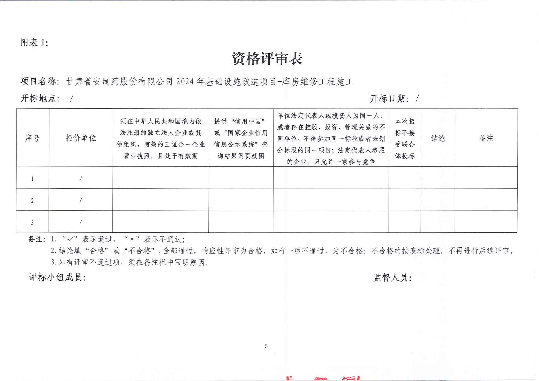 甘肅普安制藥股份有限公司2024年基礎(chǔ)設(shè)施改造項(xiàng)目-庫房維修工程施工招標(biāo)公告