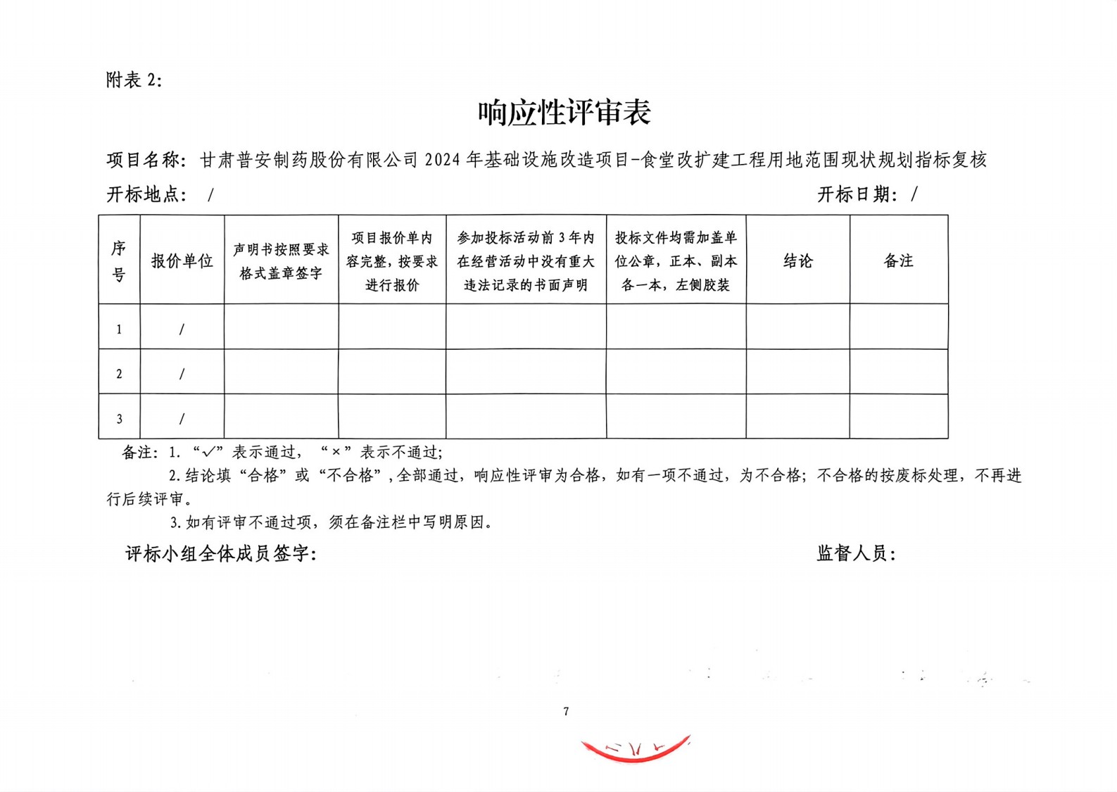 甘肅普安制藥股份有限公司2024年基礎(chǔ)設(shè)施改造項目-食堂改擴建工程用地范圍現(xiàn)狀規(guī)劃指標復核服務招標公告