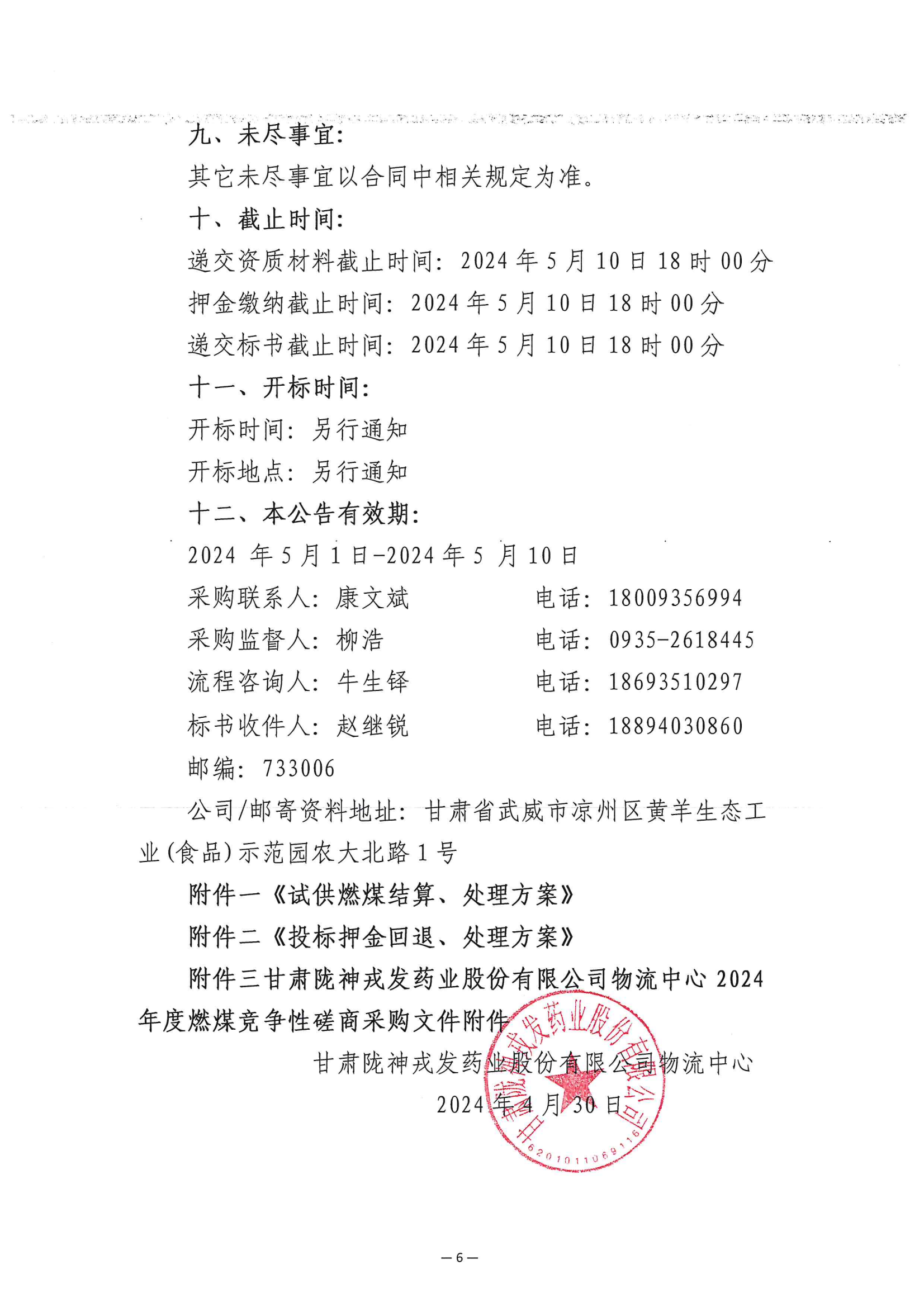 甘肅隴神戎發(fā)藥業(yè)股份有限公司物流中心2024年度燃煤競(jìng)爭(zhēng)性磋商采購(gòu)公告