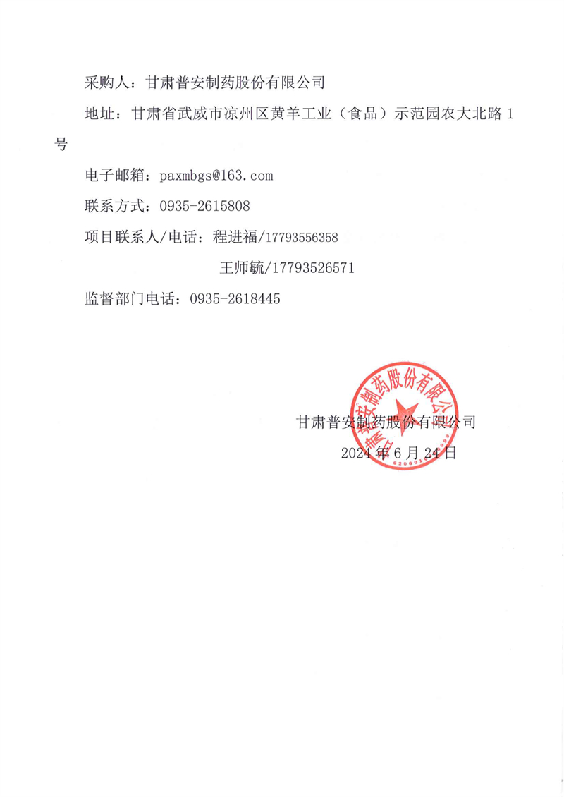 甘肅普安制藥股份有限公司2024年基礎(chǔ)設(shè)施改造地溝管道維修更換工程競爭性磋商公告