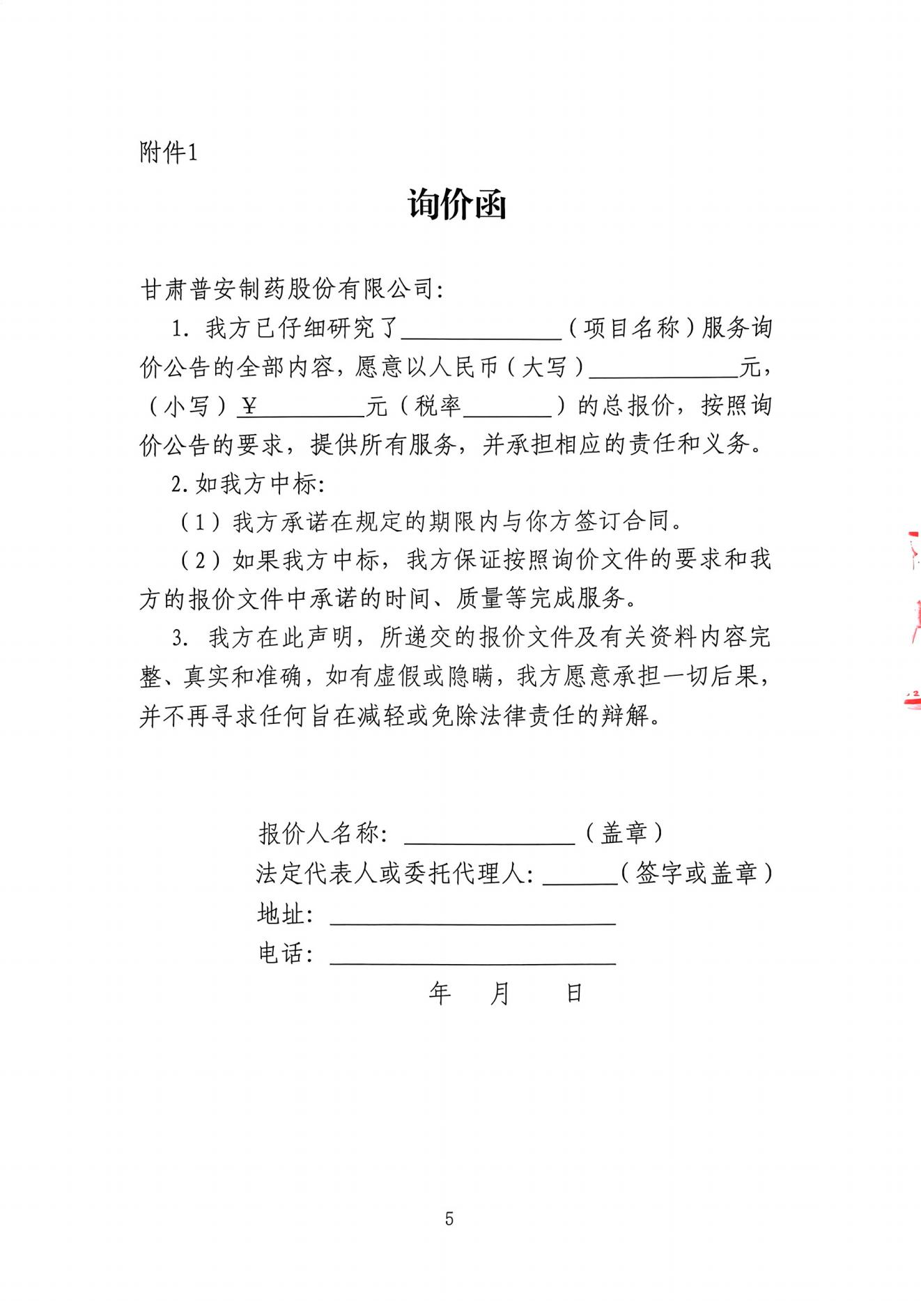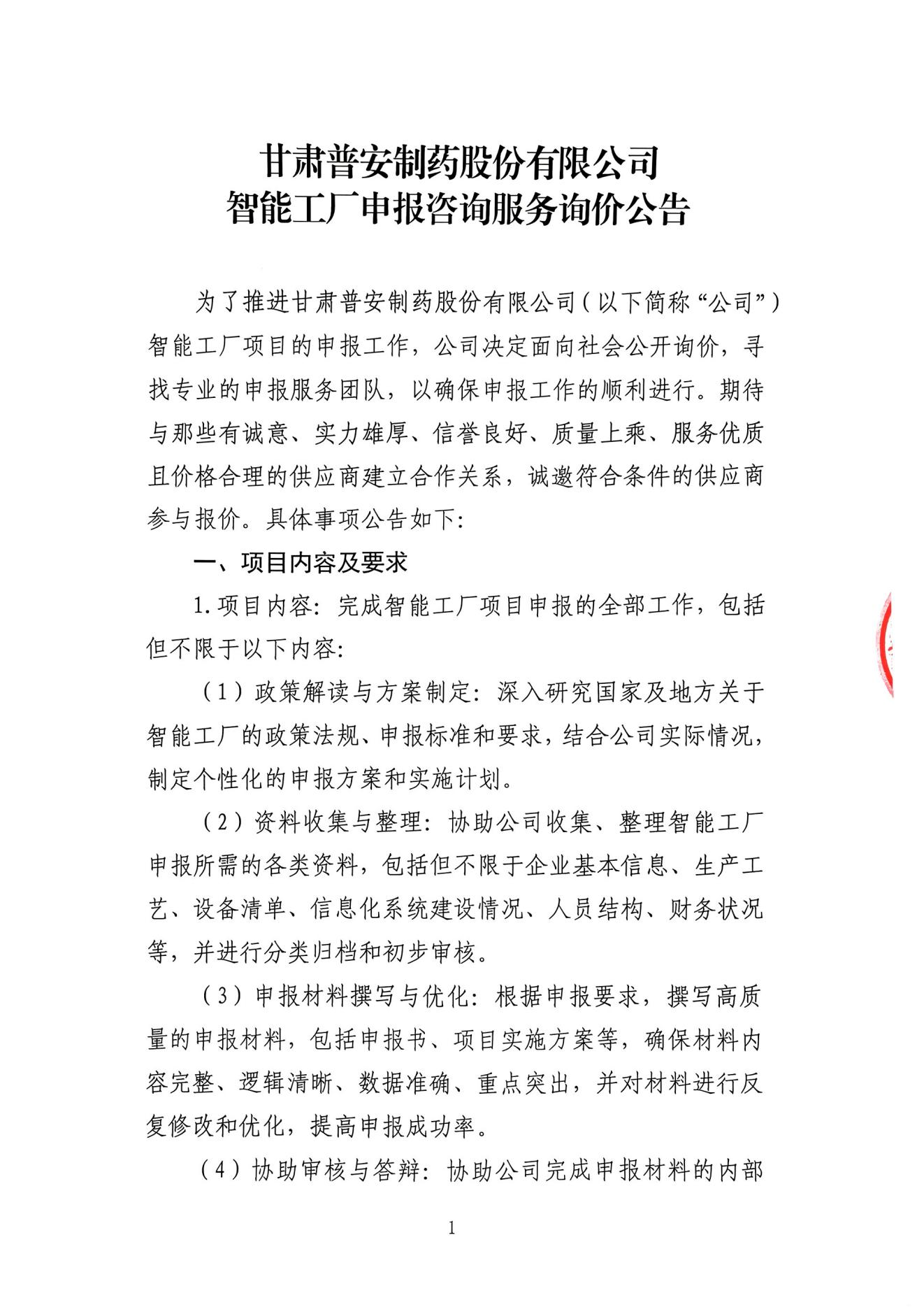 甘肅普安制藥股份有限公司智能工廠申報(bào)咨詢服務(wù)詢價(jià)公告
